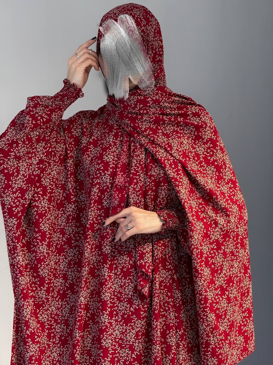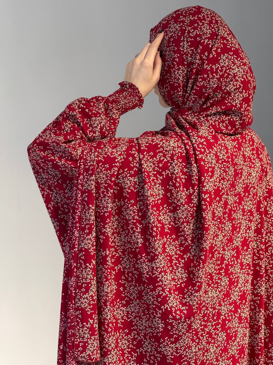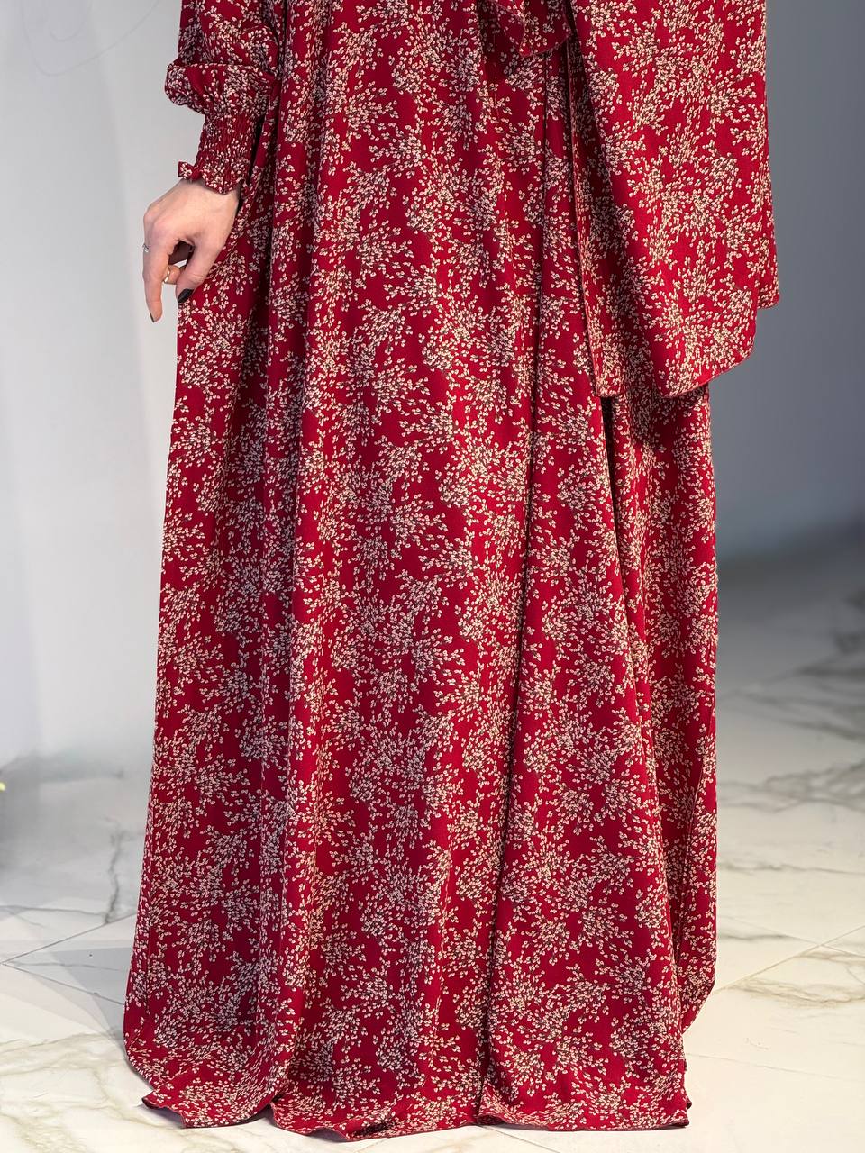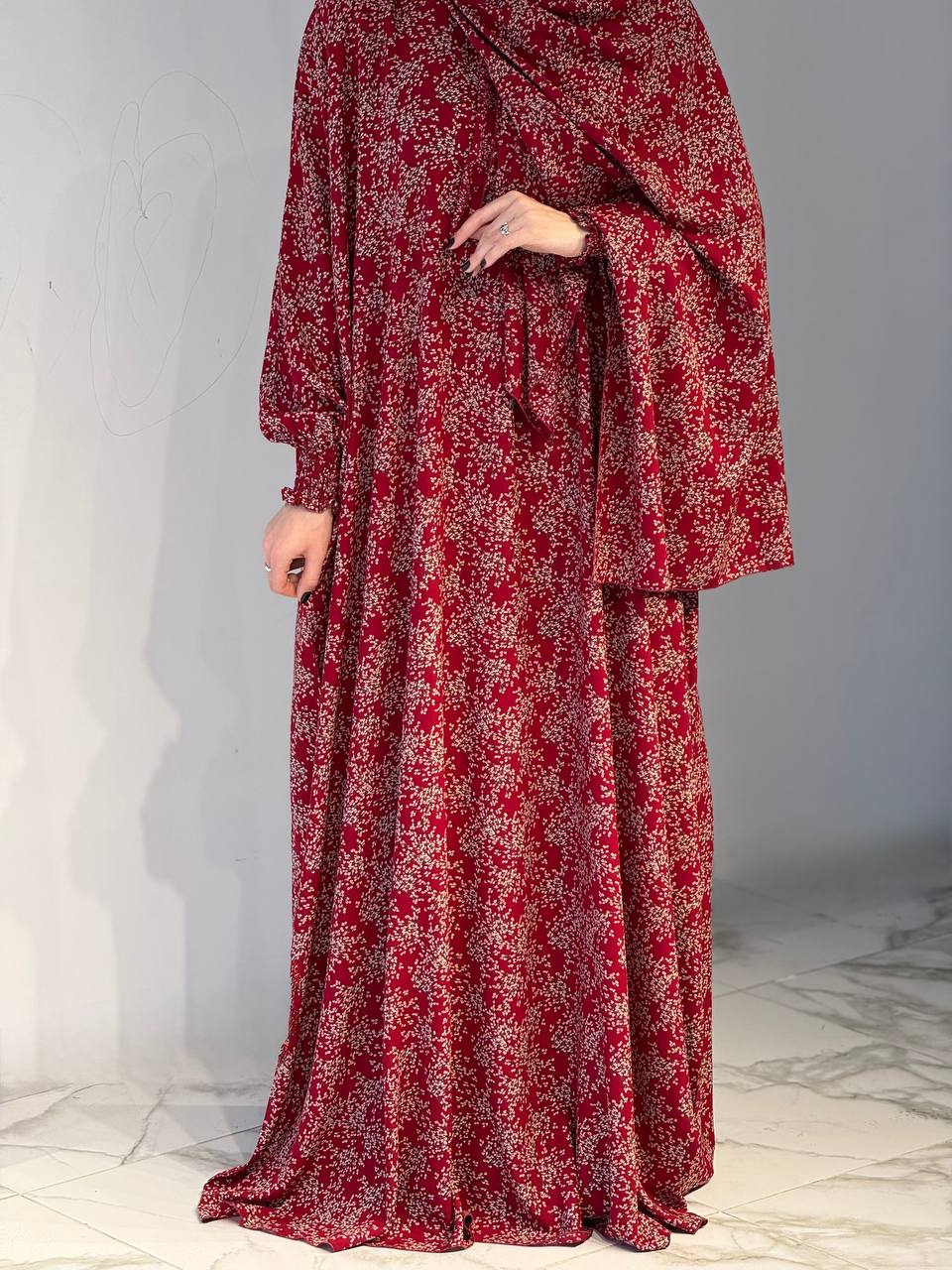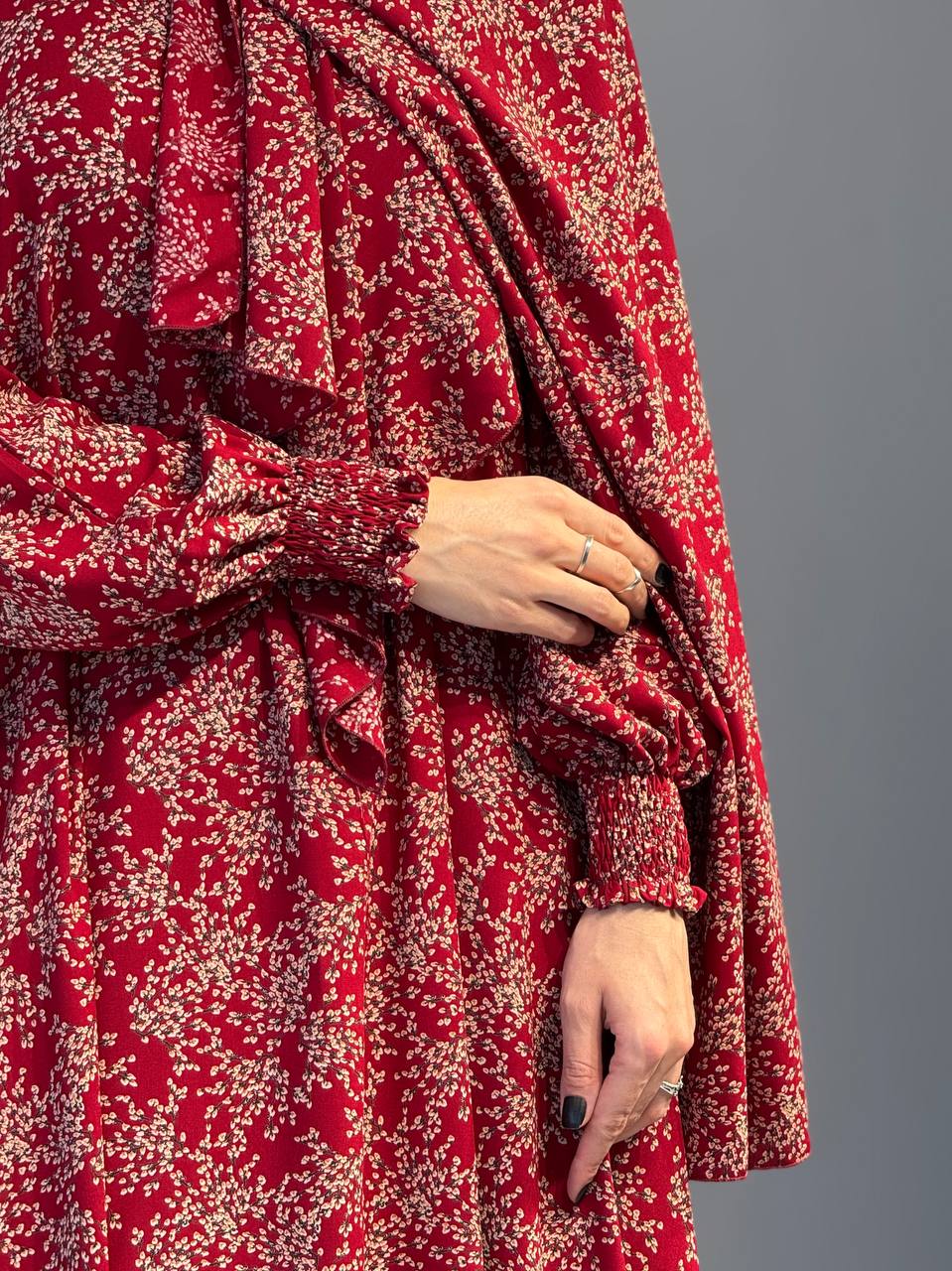 Rode bloemendroom- comfortabele jurk met geïntegreerde sjaal