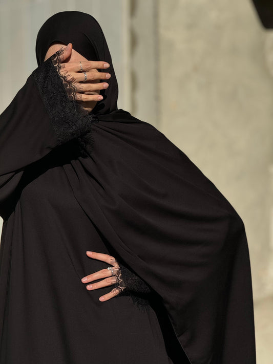 Abaya in Tensil Cupra – Zacht kant en zijdeachtige elegantie