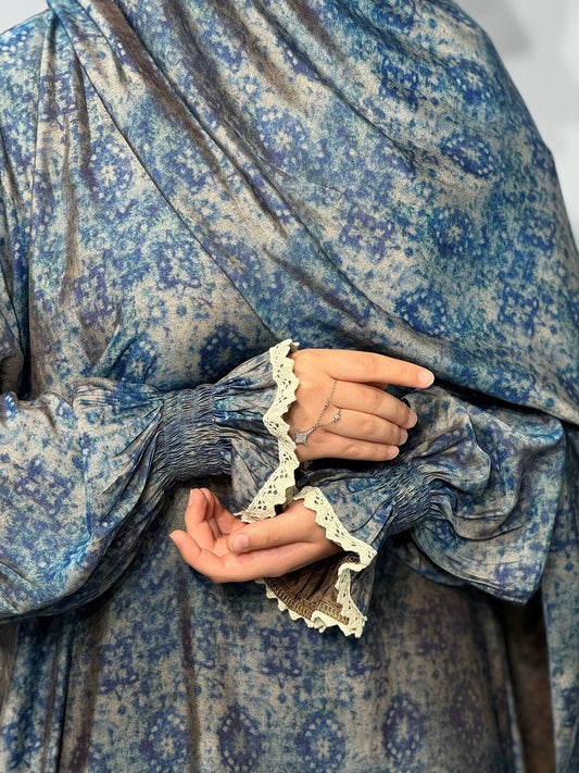 Luxe gebedsjurk van fijne zijde met geïntegreerde hijab