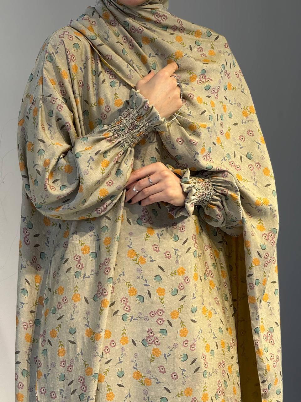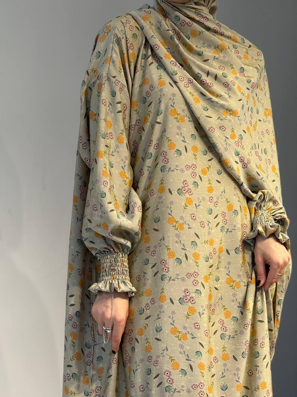 🇬🇧 Prayer Dress with Warm Floral Print – One Size, Viscose Fiber, Separate Sjjal