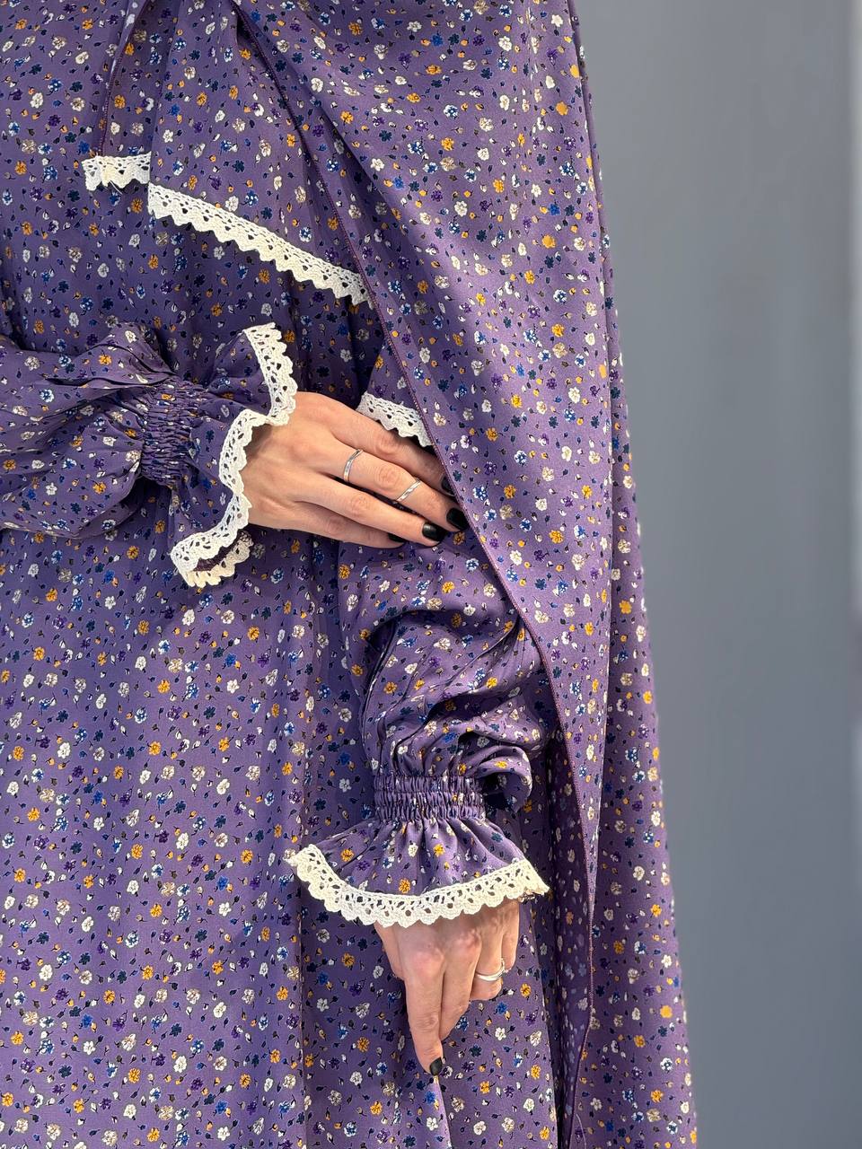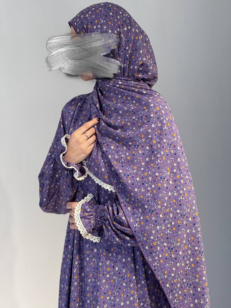 ✨This purple floral dress is made from 100% natural cotton, offering softness, breathability, and all-day comfort. Its flowing design features delicate lace-trimmed sleeves and a cheerful floral print, making it both elegant and versatile. Comes with a matching headscarf for a complete, stylish look.
